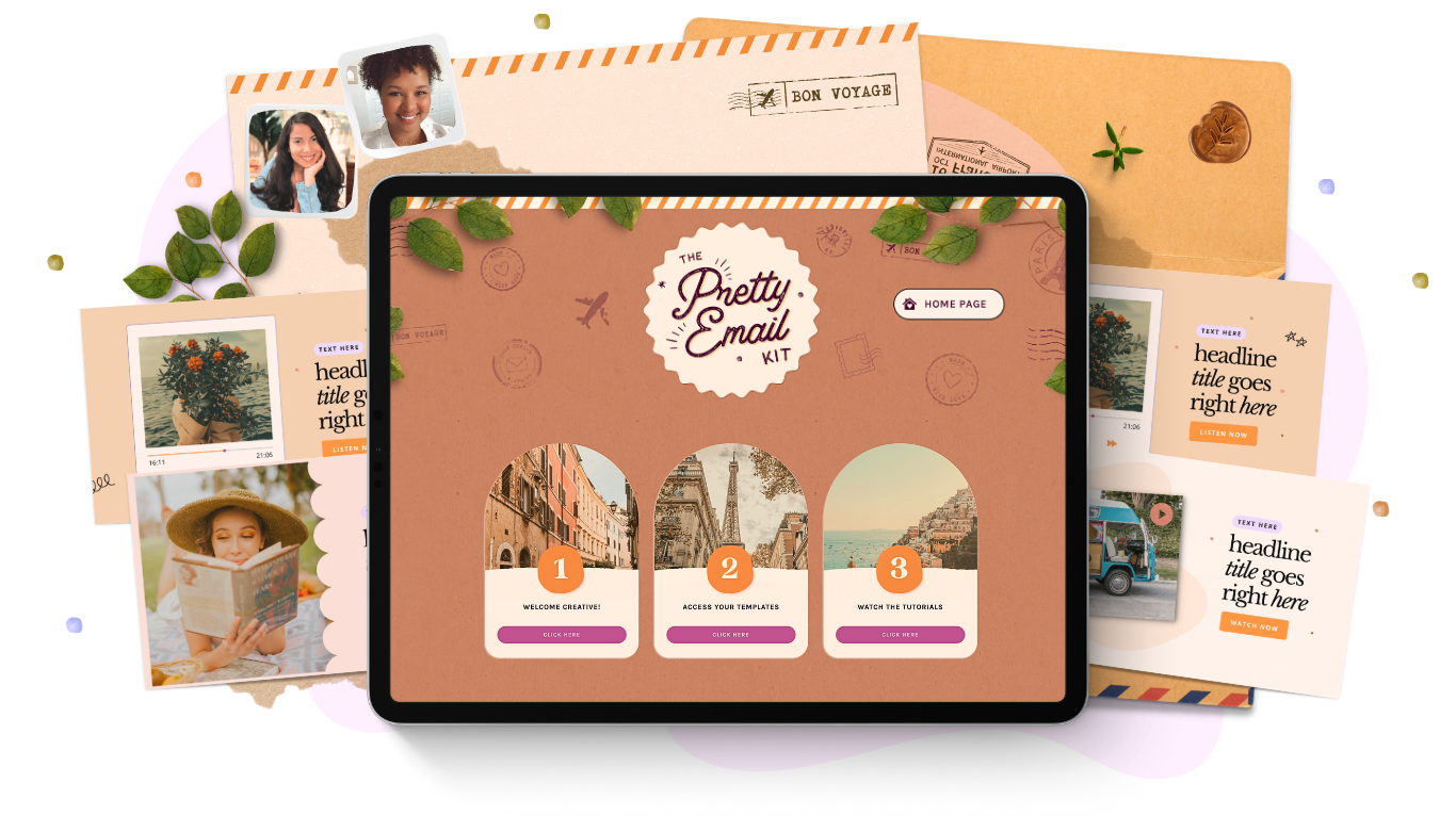 The Pretty Email Kit is for online business owners who want to uplevel and beautify their email newsletters so they can get BIGGER results with their email list.